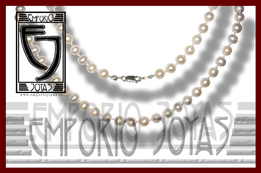 Collar de Perlas Cultivadas Collar de Perlas Cultivadas Freshwater Broche Modelo Mosquetón en Plata Fina Perlas cultivadas Legítimas Freshwater de 6.0- 7.0 mm. aprox. Regularmente Redondas- Semi-redondas Tono: Blanco Largo: 47 cm. aprox. Hilado: a mano nudo a nudo $ 29.500.- CONSULTE OPCIÓN MAYOR LARGO Y DOBLE VUELTA, BROCHE ORO 18. kl. PRODUCTO A PEDIDO entrega 4 días Qué es una Perla cultivada - Qué es Freshwater Aquí